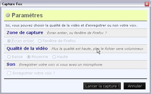 Capture Fox : Filmer votre écran
